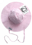 Sun protection UPF 50+ - in a gorgeous new design in pale pink broderie anglaise, a fabulous wide-brim sunhat, perfect to protect your baby or toddler from the sun. They also have ties to keep them on! 100% soft cotton with a soft white cotton lining.
