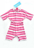NOTE: This sunsuit has three colour stripes - see the second photo imag - lolly pink, pale pink and white stripes. The exact design worn by the model has sold out.
