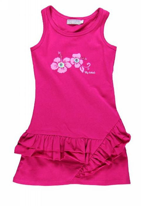A gorgeous cotton Lycra girl’s dress from Bóboli. Bright pink in an A-line shape with ruffles! A very flattering semi-fitted shape. 90% cotton 10% Lycra™.