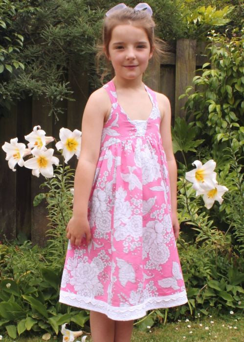 A stunning girl’s dress from the Seafolly Girls Powder Room collection! In a gorgeous "juicy" pink, with white flowers everywhere, it is simply stunning! Perfect for holidays or a special occasion.