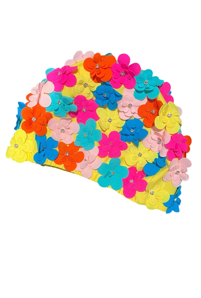 This chic polyester/Spandex petal cap has a fabric lining with an elasticated rim to ensure a close and comfortable fit.