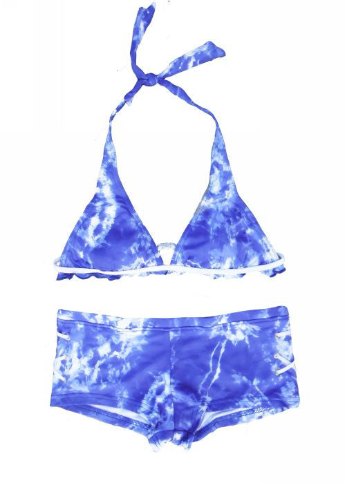 A very chic girl’s bikini from Histoire de Plage in a blue tie dye print