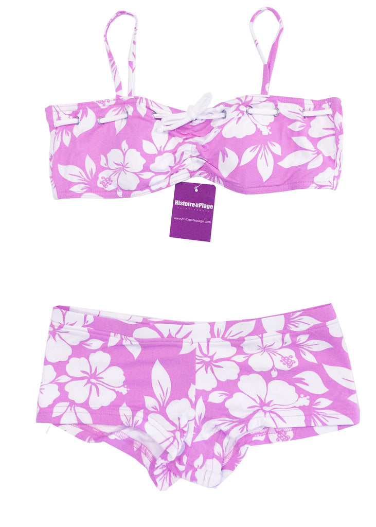 A new cool girl’s bikini from Histoire de Plage in lilac with a white floral print.