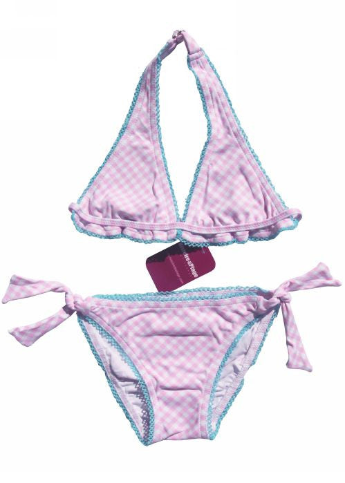 A beautiful new girl’s bikini from Histoire de Plage in pale pink and white print. A halter neck style top.