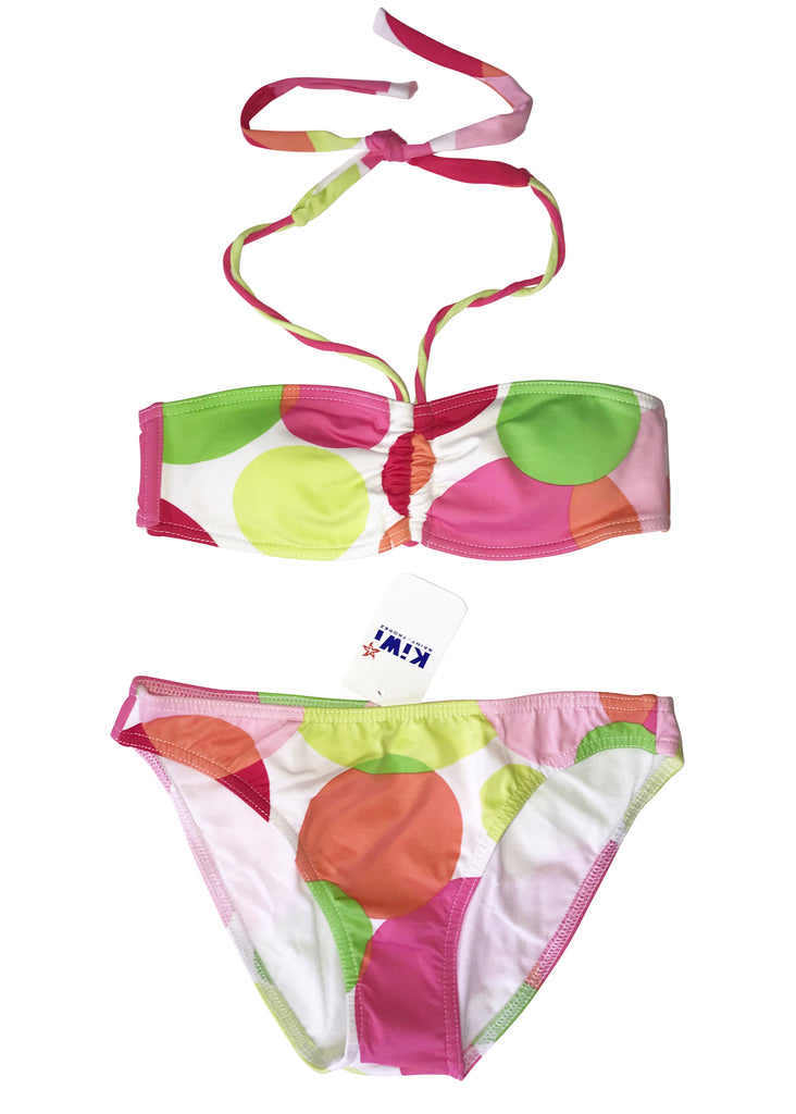A very chic new girl’s bikini from Kiwi St Tropez – in a white with vivid spots everywhere!