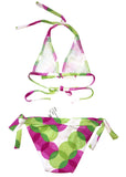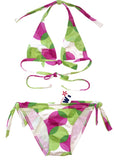 An absolutely stunning new girl’s bikini from Kiwi St Tropez – in a cool white, pink and lime design with ties at the side and a halter neck top.