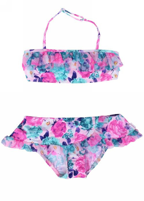 Simply gorgeous from Seafolly Little Girls Cotage Garden collection - the cutest new girl’s bikini – in a cute Pink Garden rose print - with a mesh frill