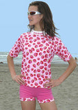 These two piece UPF 50+ sun protection sunsuit sets are perfect for keeping your girls and boys safer in the sun.