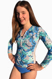 For effective sun protection, this long sleeved 2 piece girls sunsuit set from Seafolly for older girls, is perfect for protecting your daughters skin from the sun. Rated at UPF 50+ sun protection.