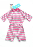 A fresh new stripe for girls, in lolly pink, pale pink and soft grey. (NOTE: the design the model is wearing has sold out).