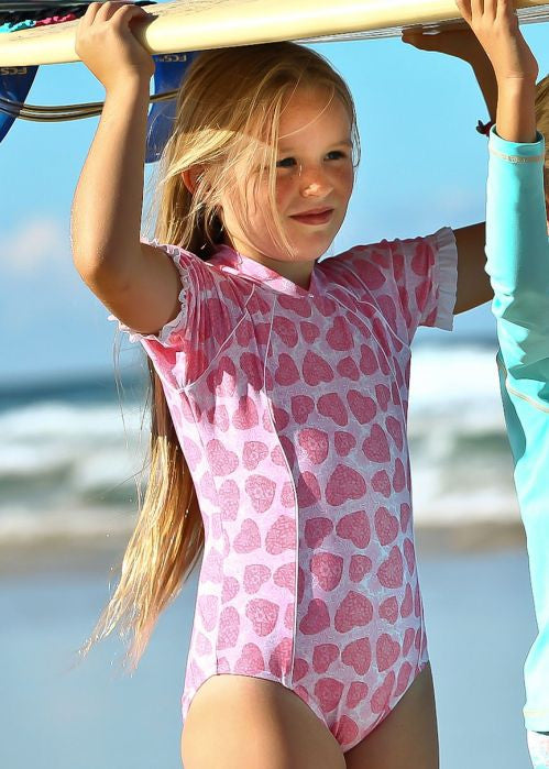 These girls surf suits and sunsuits in pink lemonade, are designed to give your kids excellent UV protection whenever they are messing about outside! The kids sun suits are stylish, comfortable & fast-drying, and are made from fabrics tested at UPF50+ which offers excellent sun protection. 82% nylon, 18% Lycra™.