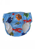 This is a cute swimming nappy with a fish print. These practical swim nappies for boys from Flap Happy are perfect for taking your baby swimming!