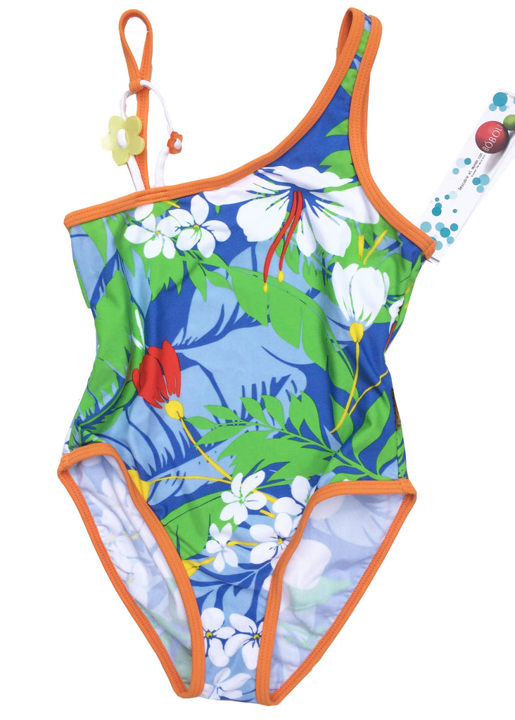 A stunning new girls swimsuit from Bóboli of Spain. With a gorgeous aloha print everywhere!