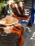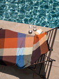 The nostalgic plaid combines bright tones with warm hues to create a playful, unexpected colour palette. Made with cotton in a relaxed waffle weave with a fringe detail.