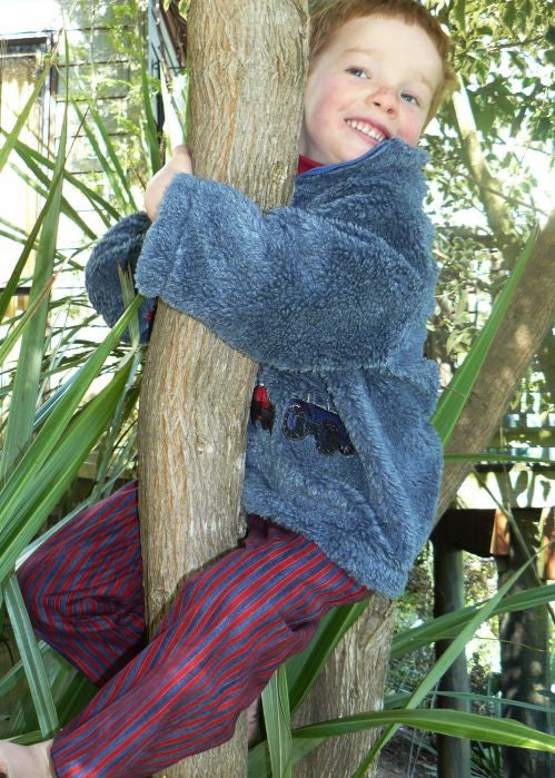 Made in New Zealand, 100% cotton fabrics on the outside, and a co-ordinating 100% cotton plain corduroy on the inside.