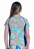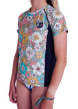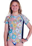 From the new O’Neill range, this stunning UV rash T-shirt for girls offers UPF 50+ sun protection. In a gorgeous Wildflower print, this short sleeve rash tee is perfect for wearing over a swimsuit or bikini when swimming, sailing or under a wetsuit.