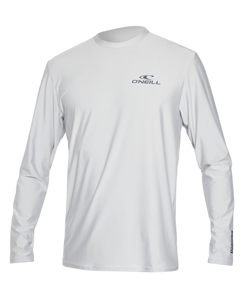 From the new O’Neill Skins range, this men’s long sleeve UV rash T-shirt offers UPF 50+ sun protection, is fast drying, with a four way stretch. In cool grey with a grey logo, this crew neck, long sleeve rash tee is perfect teamed up with boardies when swimming, sailing or under a wetsuit.