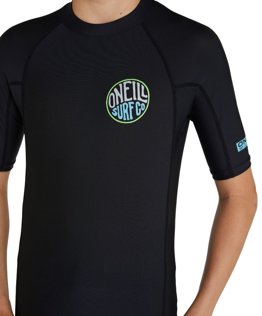 From the new O’Neill Reactor premium range, this short sleeve UV rash T-shirt for boys and teens, offers UPF 50+ sun protection. In black, this crew neck, short sleeve rash tee is perfect for wearing with boardies when swimming, sailing or under a wetsuit.