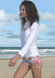 A chic girls design, this long sleeved UV sun protection T-shirt from Sun Emporium is in white.